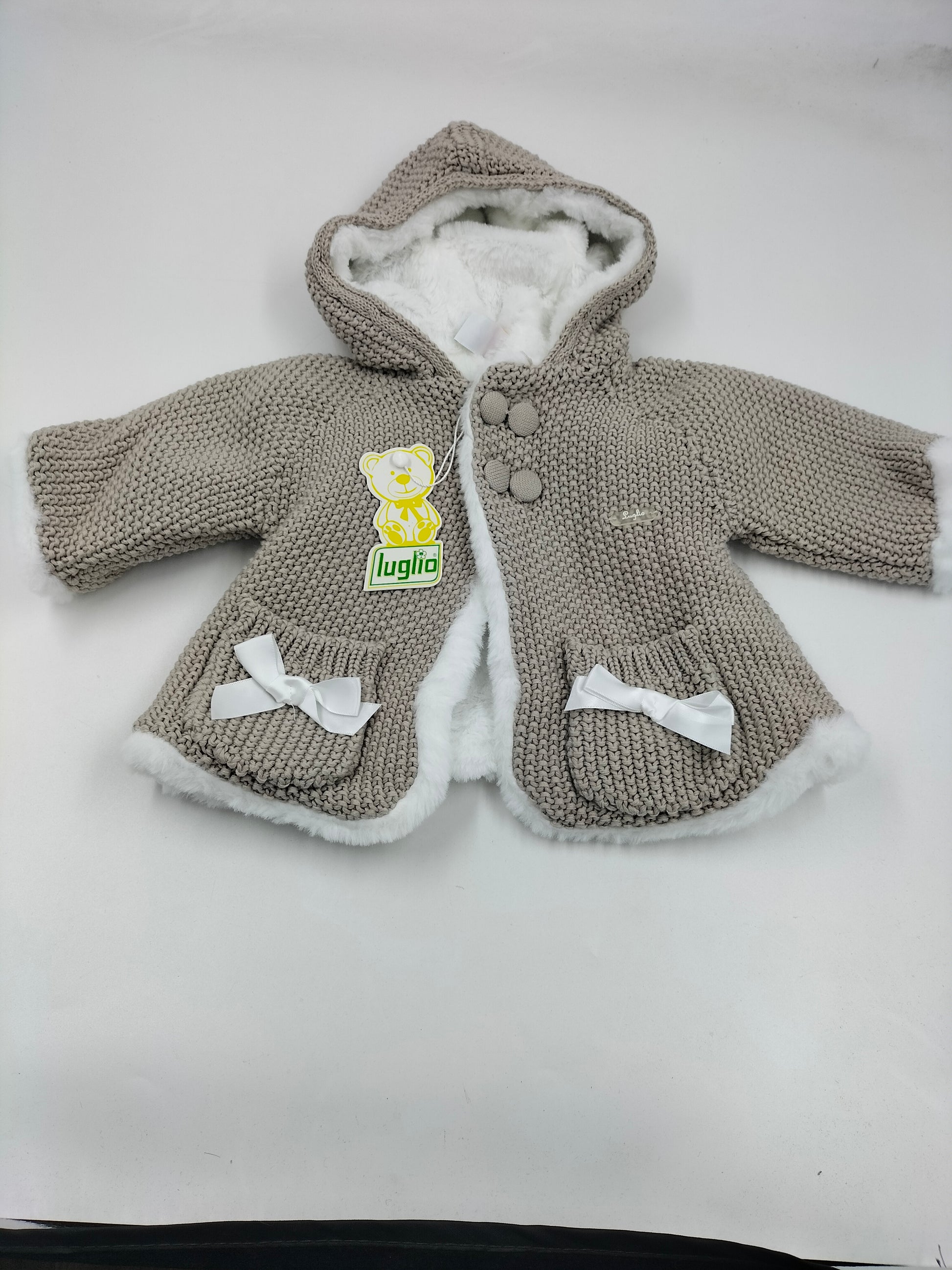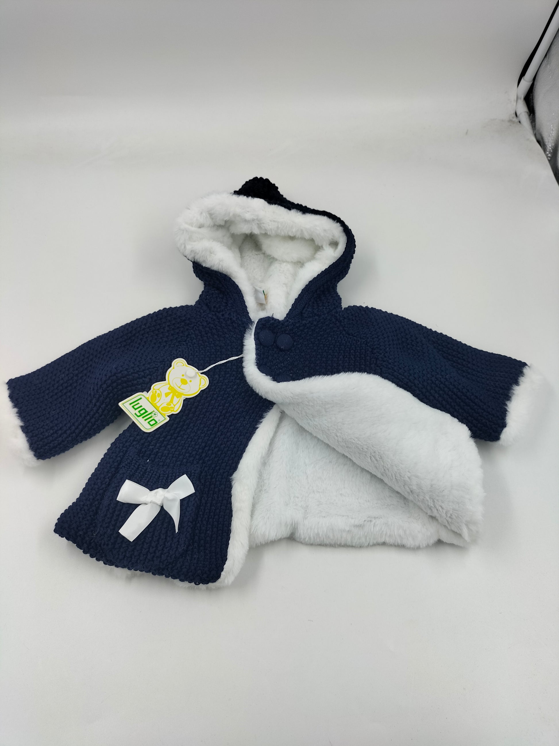 Coccole e calore per i più piccoli! Giubbino invernale con interno in pellicciotto ultra morbido e esterno in lana calda e raffinata. Perfetto dalla nascita fino ai 24 mesi.